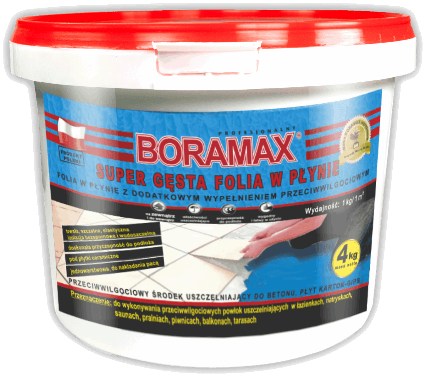 BORAMAX FOLIA W PŁYNIE SUPER GĘSTA 4KG to innowacyjny produkt stworzony z myślą o osobach poszukujących efektywnego rozwiązania do ochrony i dekoracji powierzchni. Nasza folia płynna charakteryzuje się wyjątkową gęstością, co zapewnia doskonałe krycie oraz długotrwałą trwałość. Idealnie nadaje się do stosowania na różnych powierzchniach, takich jak drewno, metal czy tworzywa sztuczne.