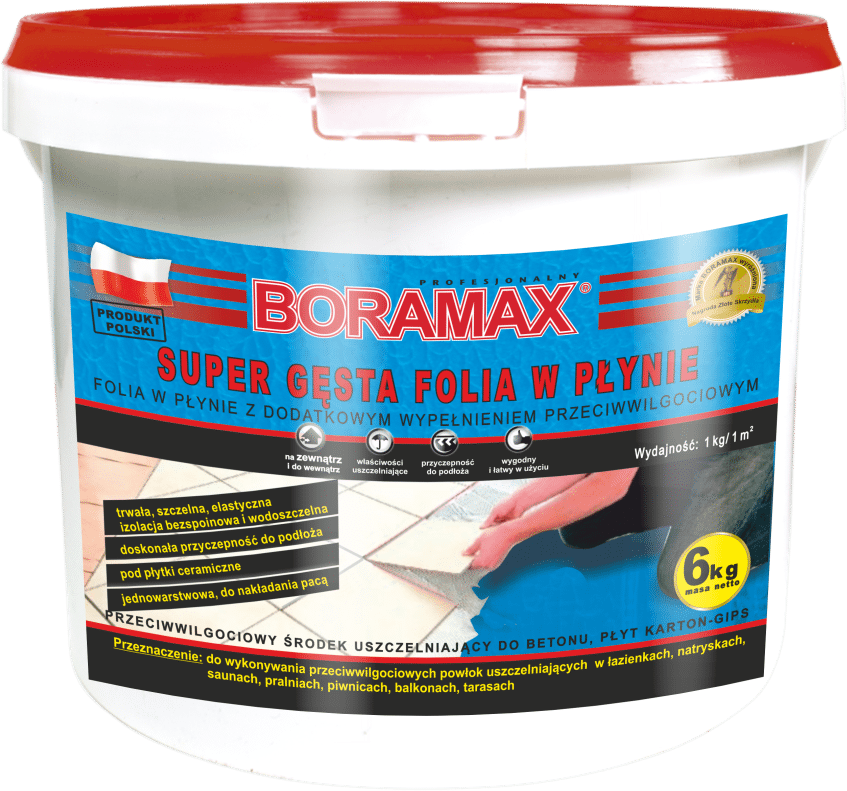 BORAMAX FOLIA W PŁYNIE SUPER GĘSTA 6KG to innowacyjny produkt, który spełnia najwyższe standardy w zakresie ochrony powierzchni i materiałów. Arkusz folii, który tworzy nieprzepuszczalną warstwę, jest idealny do zastosowań w różnych branżach, w tym budownictwie i przemyśle. Jego wyjątkowa gęstość umożliwia trwałe zabezpieczenie przed wilgocią, zarysowaniami oraz innymi uszkodzeniami mechanicznymi.
