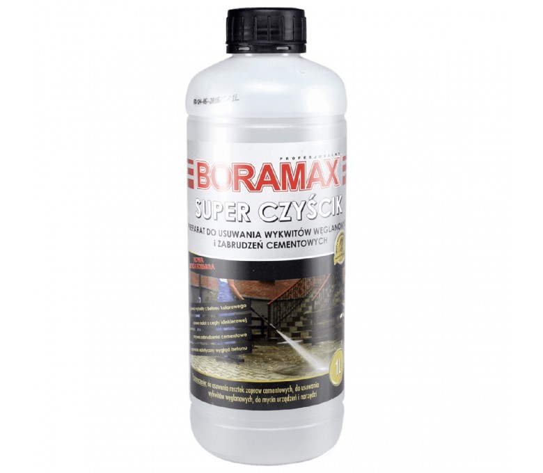 BORAMAX SUPER CZYŚCIK 1L DO BETONU to innowacyjny preparat przeznaczony do skutecznego czyszczenia powierzchni betonowych. Jego unikalna formuła pozwala na usunięcie nawet najtrudniejszych zabrudzeń, takich jak plamy z oleju, rdzy czy resztek materiałów budowlanych. Produkt doskonale sprawdza się w przypadku zarówno nowych, jak i starszych nawierzchni, przywracając im pierwotny wygląd i estetykę. Dzięki łatwej aplikacji oraz szybkiemu działaniu, BORAMAX SUPER CZYŚCIK pozwala zaoszczędzić czas i wysiłek przy konserwacji powierzchni betonowych. Zalecany do użytku zarówno w przestrzeniach zewnętrznych, jak i wewnętrznych, Produkt jest bezpieczny dla środowiska. Wybierz BORAMAX SUPER CZYŚCIK, aby cieszyć się czystymi i zadbanymi nawierzchniami przez długi czas.