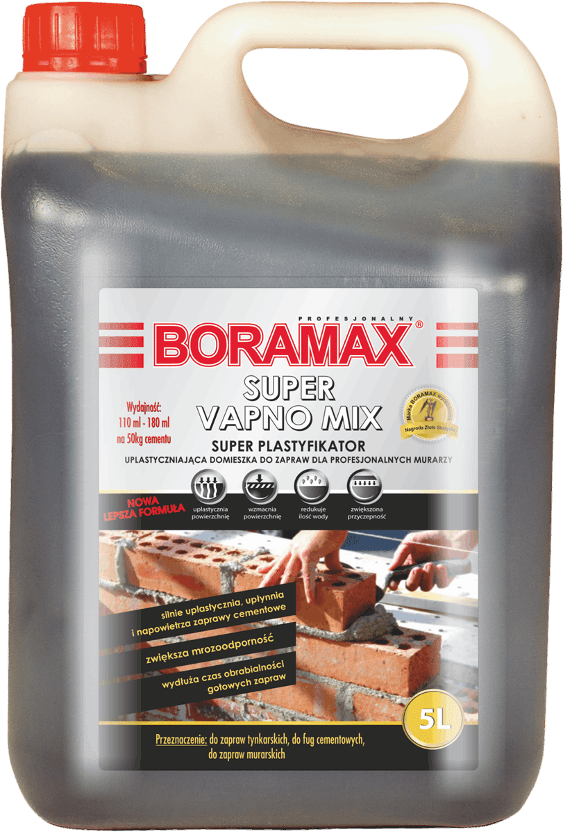 BORAMAX SUPER VAPNO MIX to doskonały wybór dla profesjonalistów poszukujących niezawodnych materiałów budowlanych. Dzięki niemu osiągniesz zadowalające rezultaty nawet w trudnych warunkach. Wybierz jakość firmy BORAMAX i przekonaj się o doskonałości naszego plastyfikatora murarskiego.