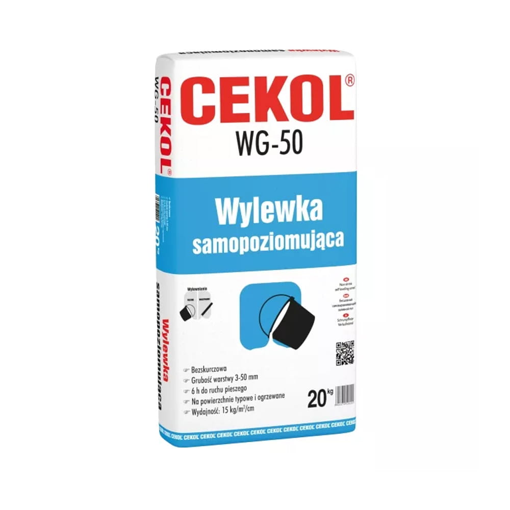 CEKOL WG-50 jest suchą mieszanką gipsu syntetycznego, wypełniaczy mineralnych i dodatków modyfikujących. Produkt można stosować w warstwie o grubości od 3 mm do 50 mm, jako jastrych zespolony, na warstwie oddzielającej lub jako podkład pływający. Zaprawa może być również stosowana w systemach ogrzewania podłogowego.